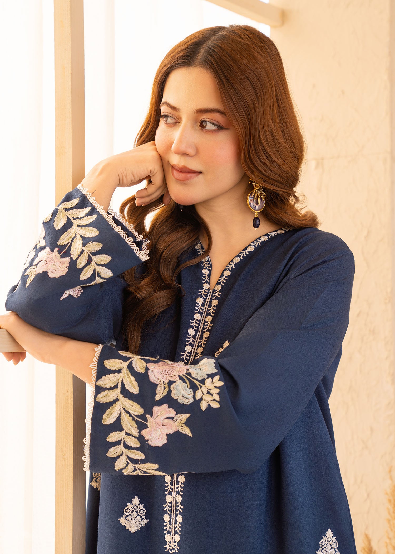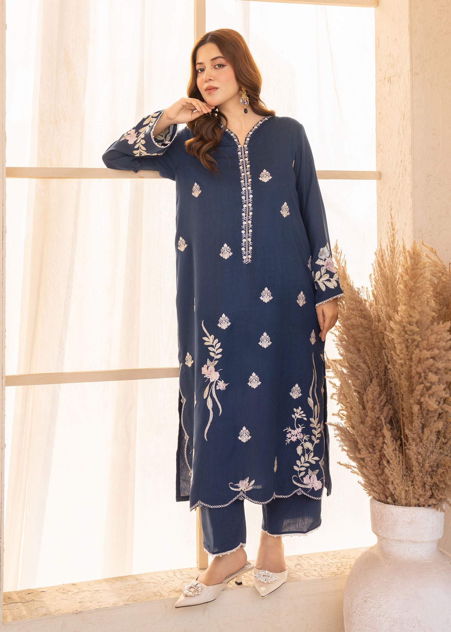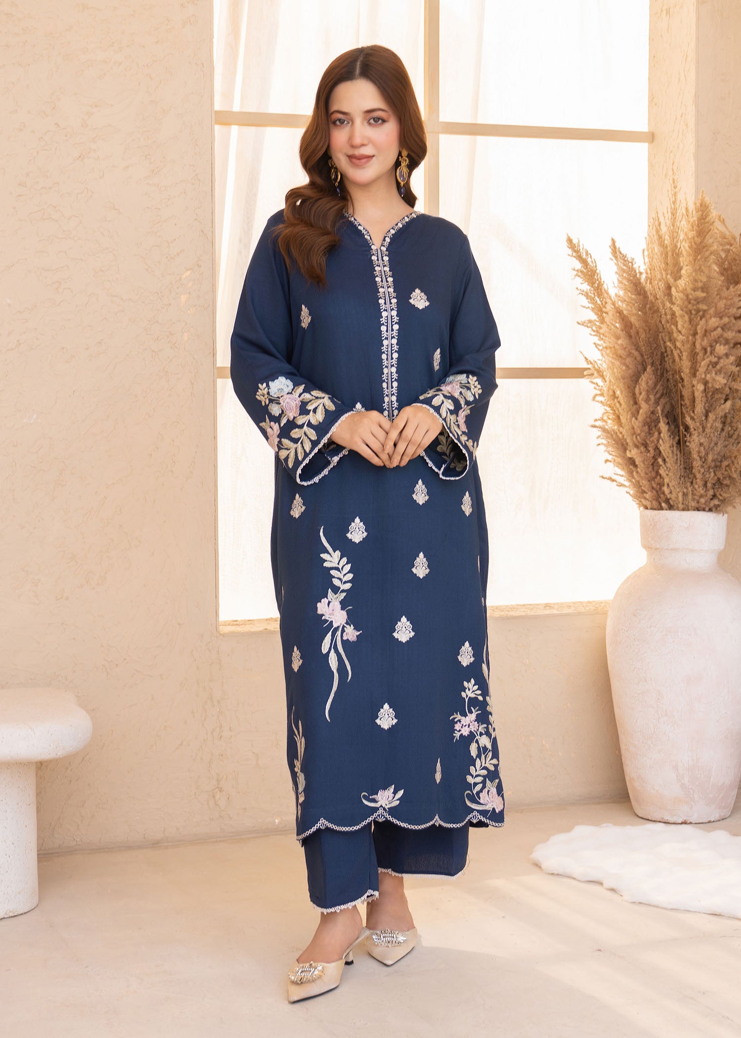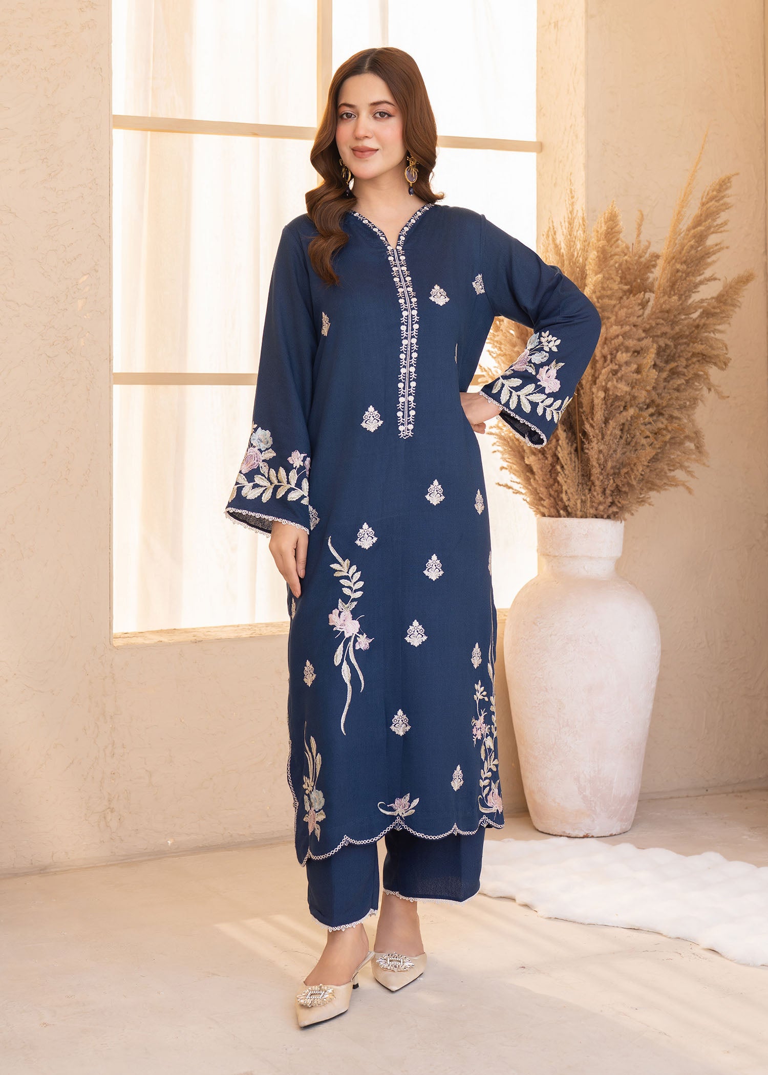 This stylish Karandi set features an embroidered shirt paired with a comfortable Karandi trouser, offering a refined yet easy-to-wear look. The serene blue shade adds a fresh, sophisticated touch, making it perfect for both casual and semi-formal occasions.