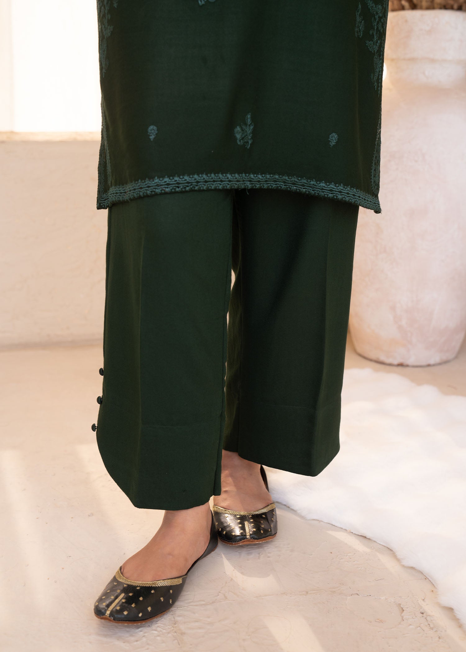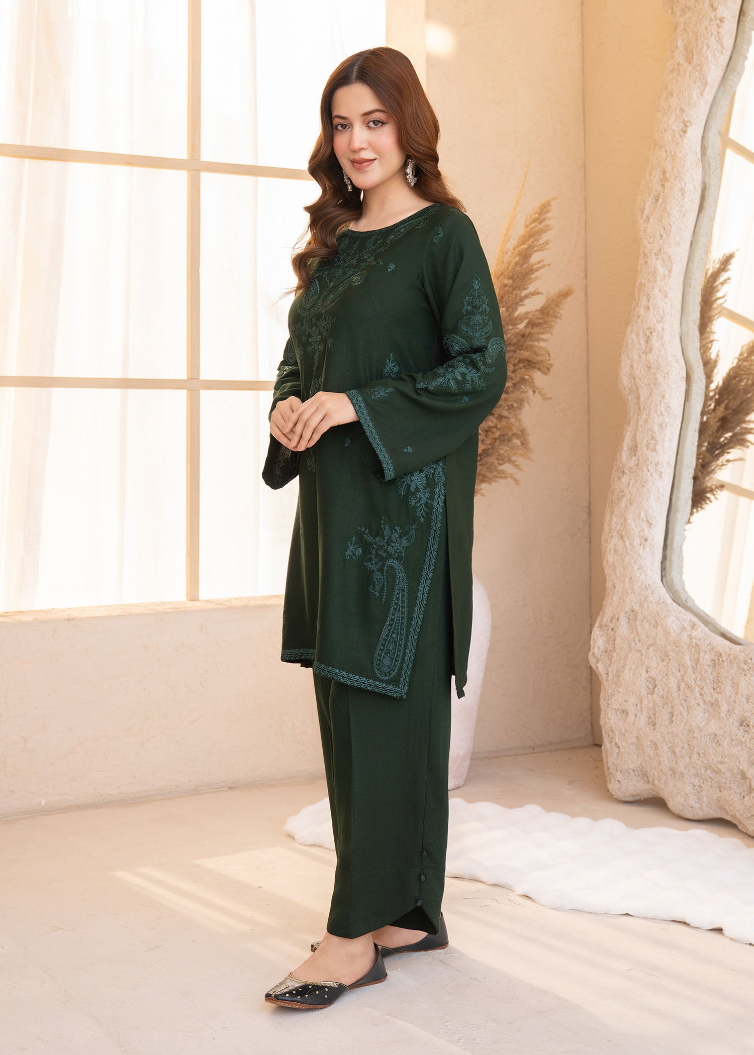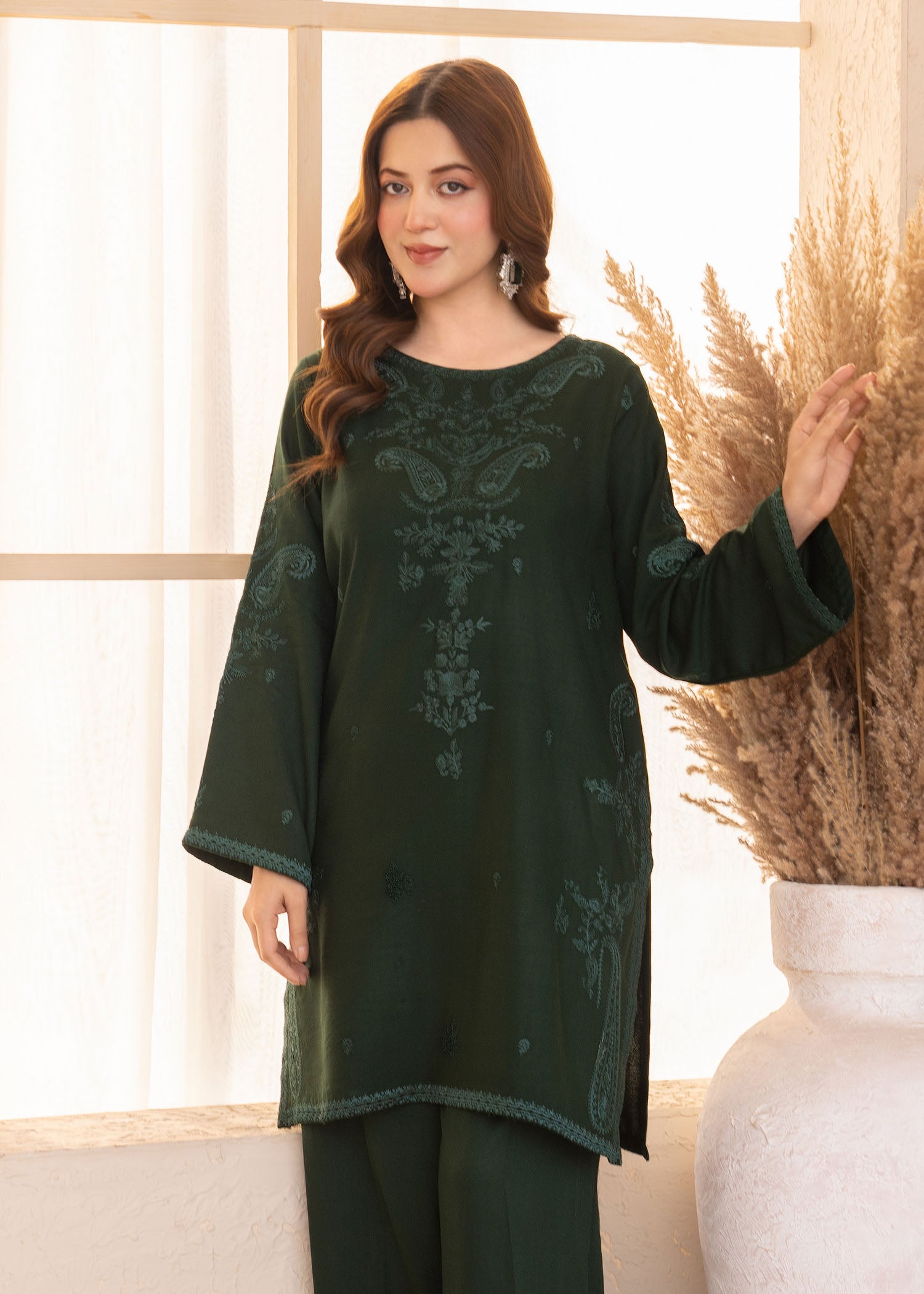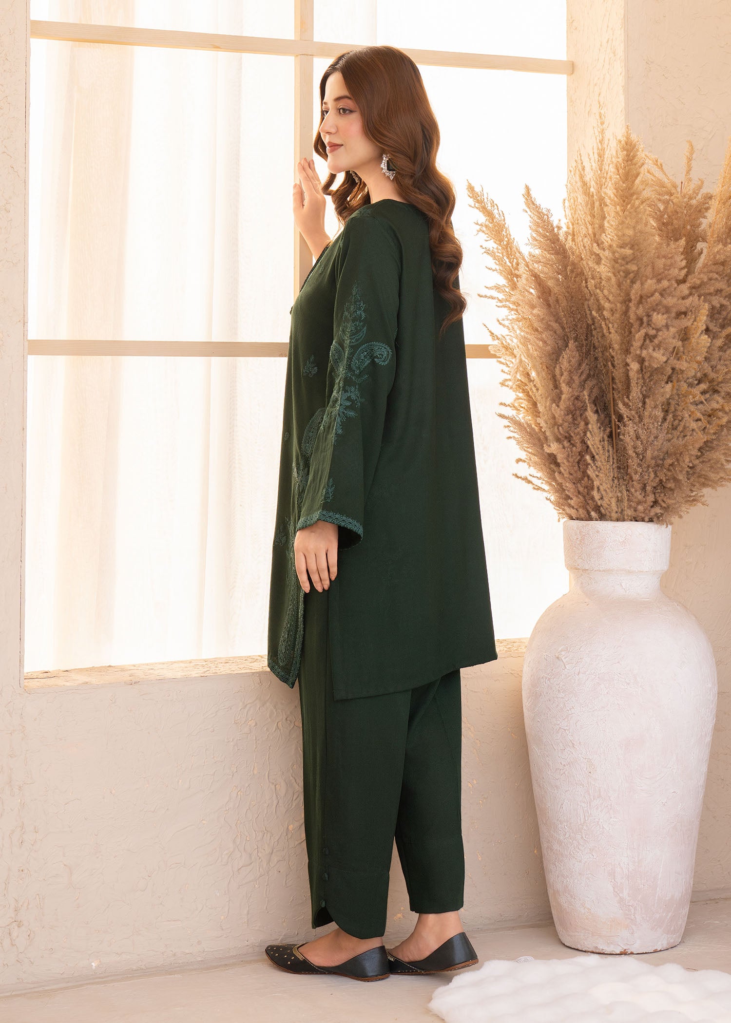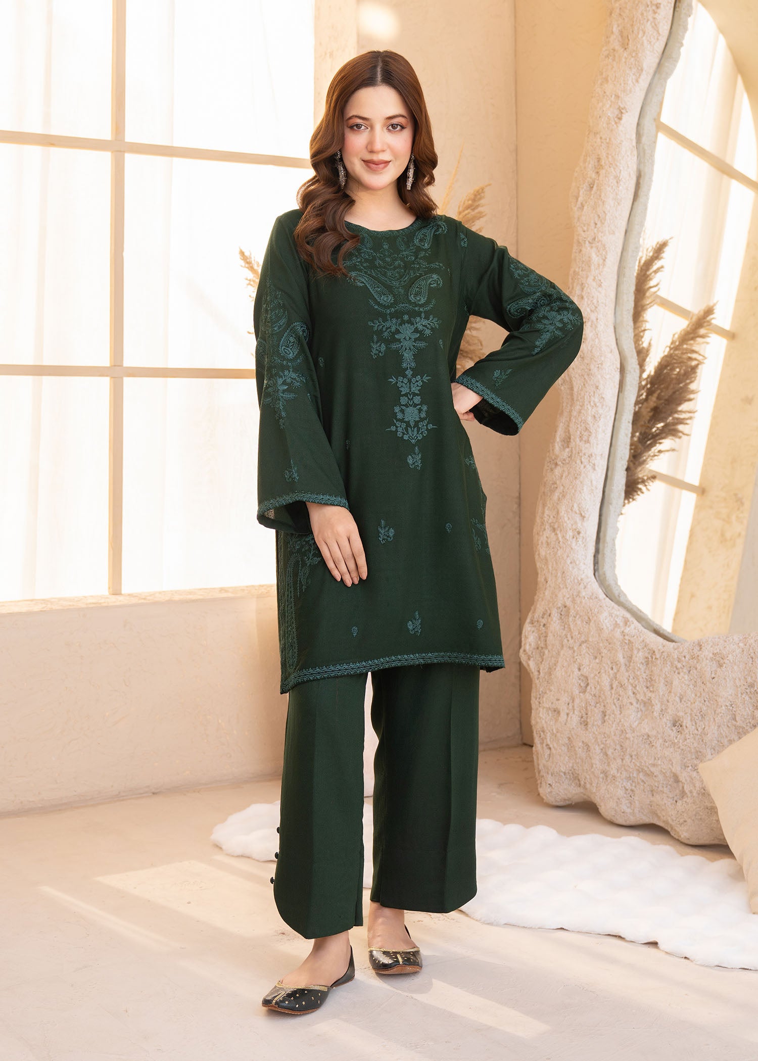 This stylish Karandi set features an embroidered shirt paired with comfortable Karandi trouser. Designed in a fresh green shade, it offers a refined yet easy-to-wear look suitable for everyday.